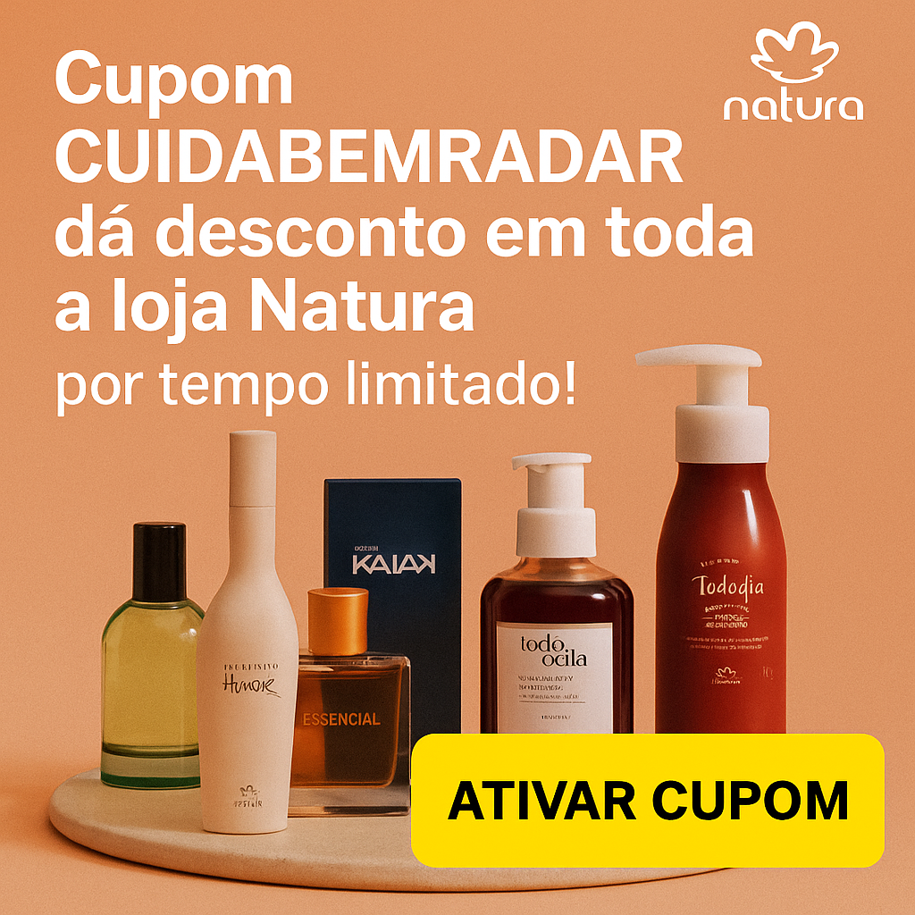 🚨 Cupom exclusivo NATURA: use CUIDABEMRADAR e ganhe até 15% OFF!