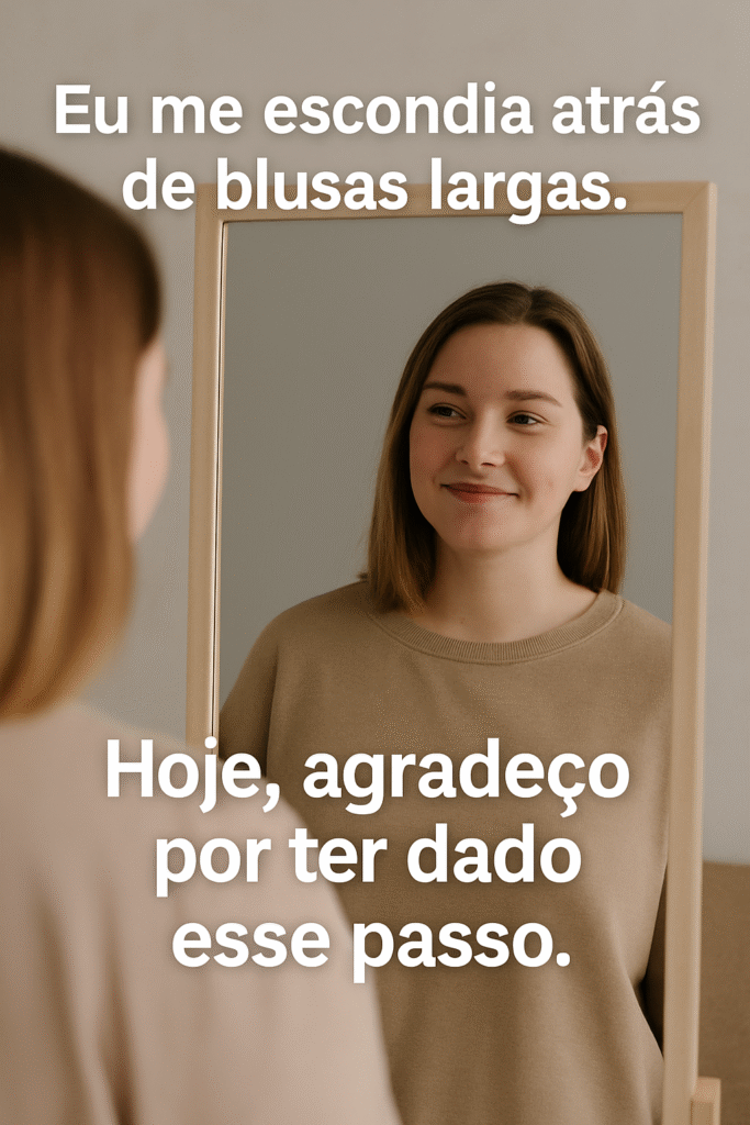 “Eu me escondia atrás de blusas largas. Hoje, agradeço por ter dado esse passo.”